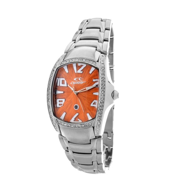 Ceas cu afișaj analogic și mecanism cu cuarț. Carcasa este decorată cu elemente decorative. Lanțul are o încuietoare standard.