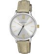 Ceas elegant de damă cu mecanism cu cuarț și afișaj analogic.