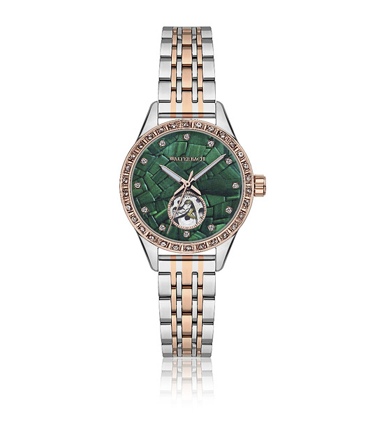 Walter Bach Ceas de damă argintiu cu lanț bicolor și cadran verde Mecanism: automat