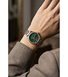 Ceas de damă argintiu cu lanț bicolor și cadran verde