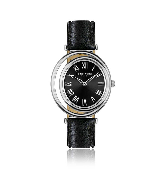 Clare Moss Ceas de damă argintiu și negru cu design asimetric Clare Afișaj analogic