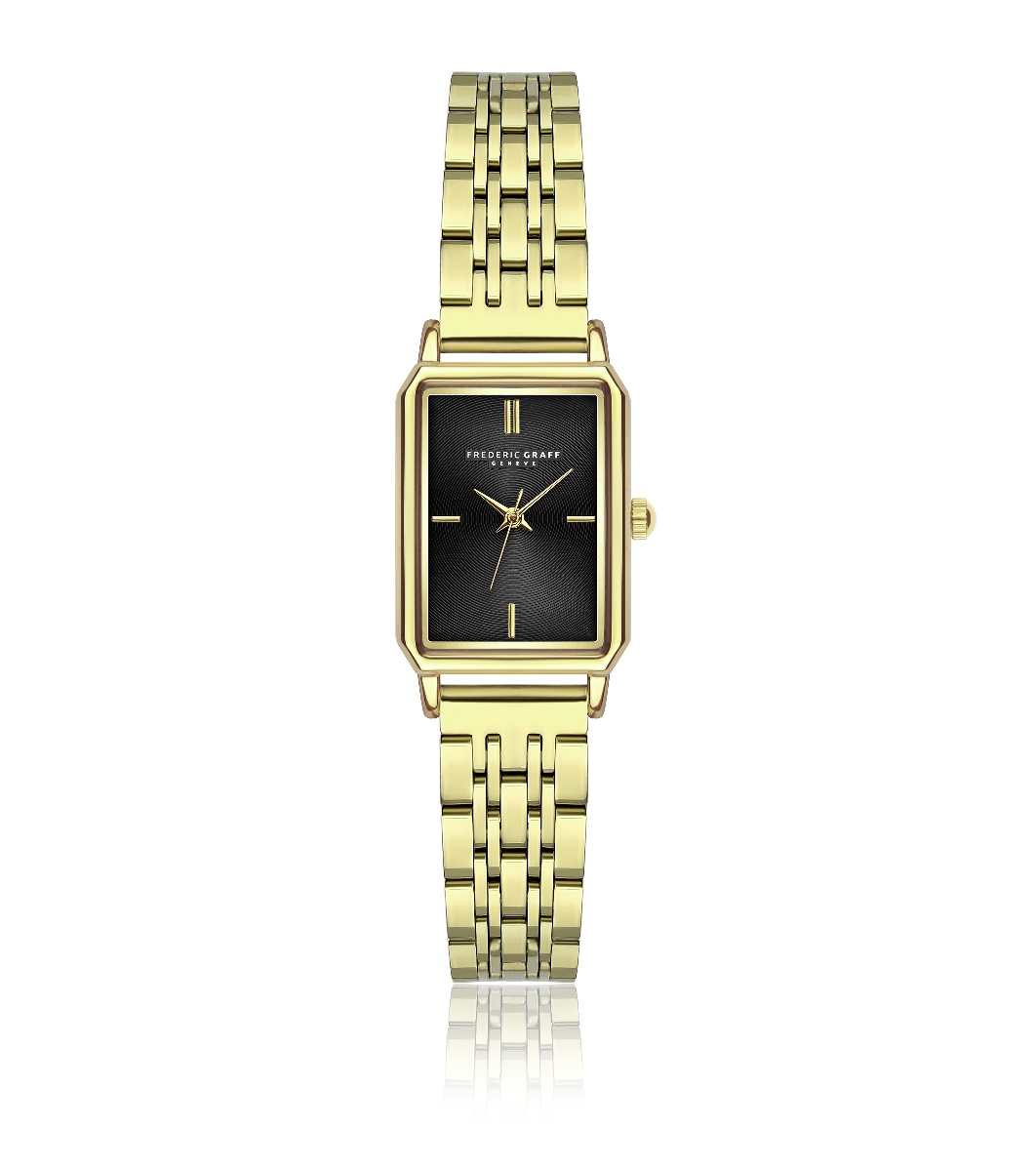 Frederic Graff Ceas de damă auriu cu cadran negru dreptunghiular Mecanism analogic cu cuarț Ronda