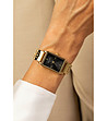Ceas de damă auriu cu cadran negru dreptunghiular
