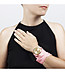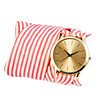 Ceas de damă auriu cu curea textilă cu dungi roșii și albe