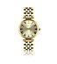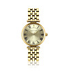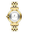 Ceas de damă din colecția Julienne cu carcasă metalică de culoare aurie și cadran auriu cu efect de soare, cifre romane și cristal unic.