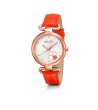 Acest ceas de damă are un afișaj analog și un mecanism cu cuarț. Carcasa este rotundă și decorată cu un element în formă de trifoi. Diametrul afișajului este de 32 mm, iar cureaua are un design clasic.