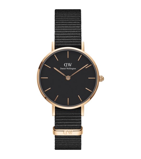 Daniel Wellington Ceas de damă auriu roz cu curea textilă neagră Ceas de mână de damă