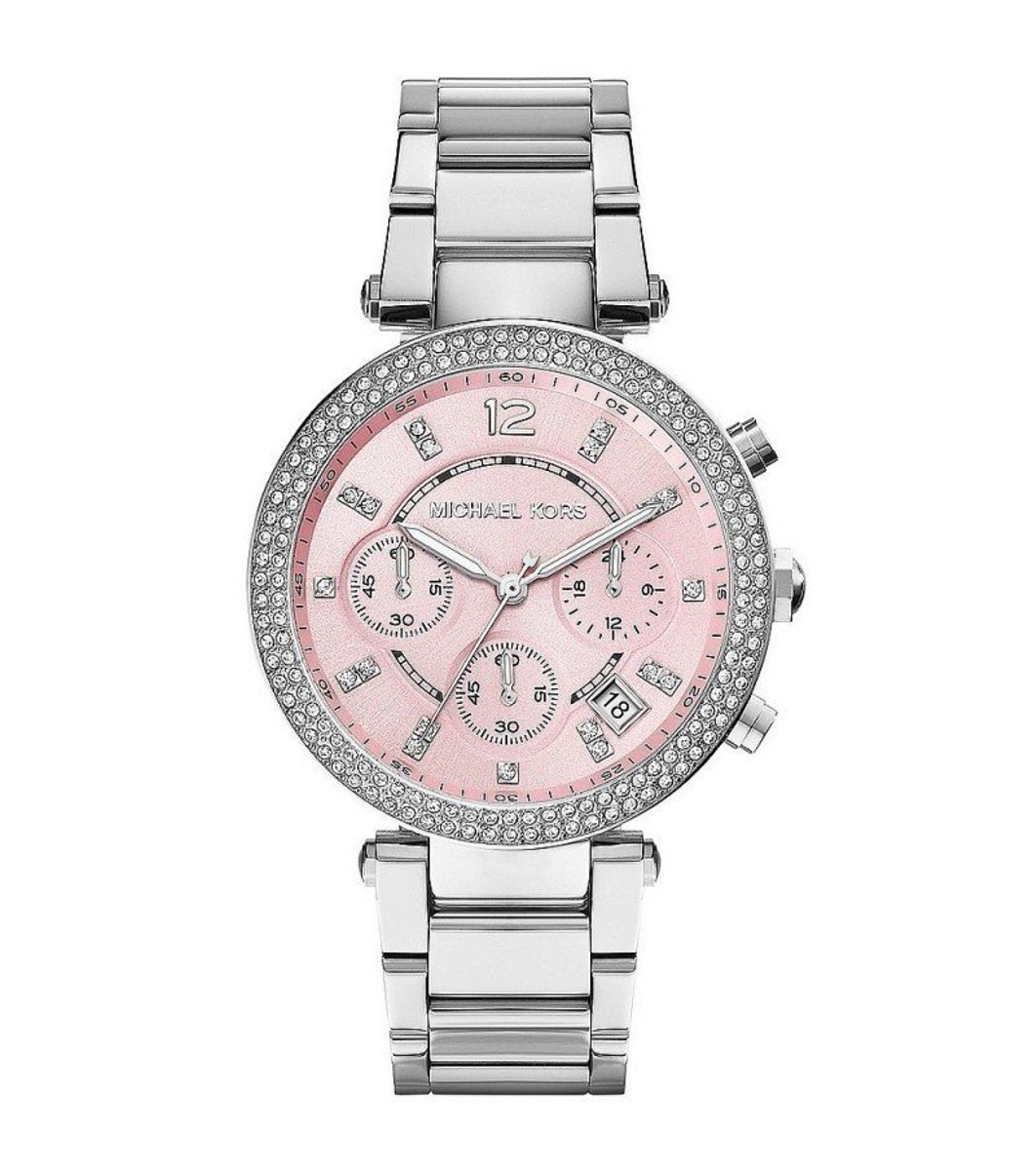 Ceas elegant de damă cu cronograf și afișaj analogic. Potrivit pentru purtare zilnică și ocazii speciale.