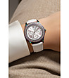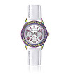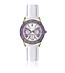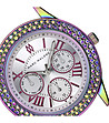 Ceas de damă cu carcasă multicoloră cu cristale și curea albă