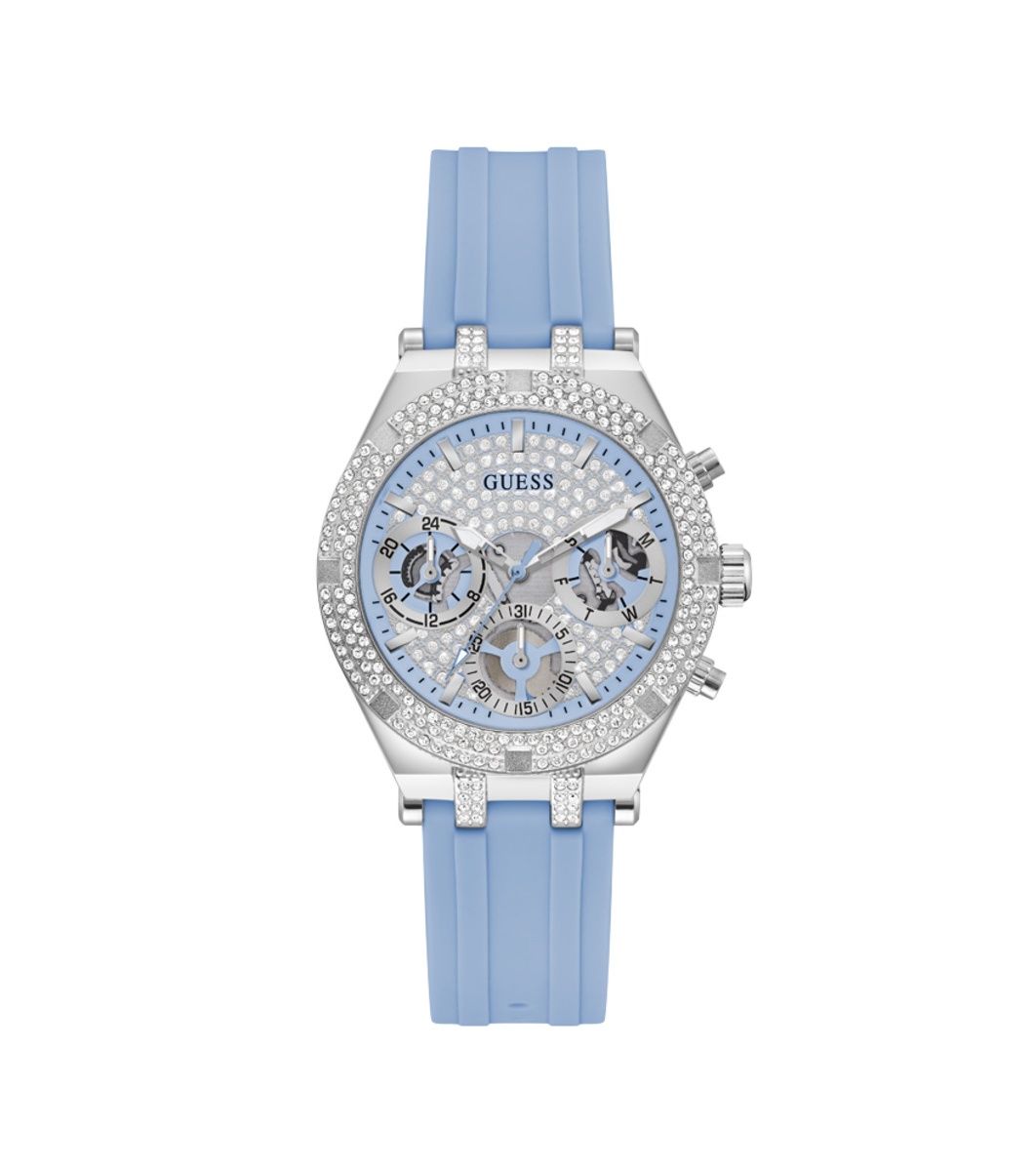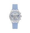 Guess Ceas de damă cu cuarț, albastru deschis și argintiu, cu pietricele
