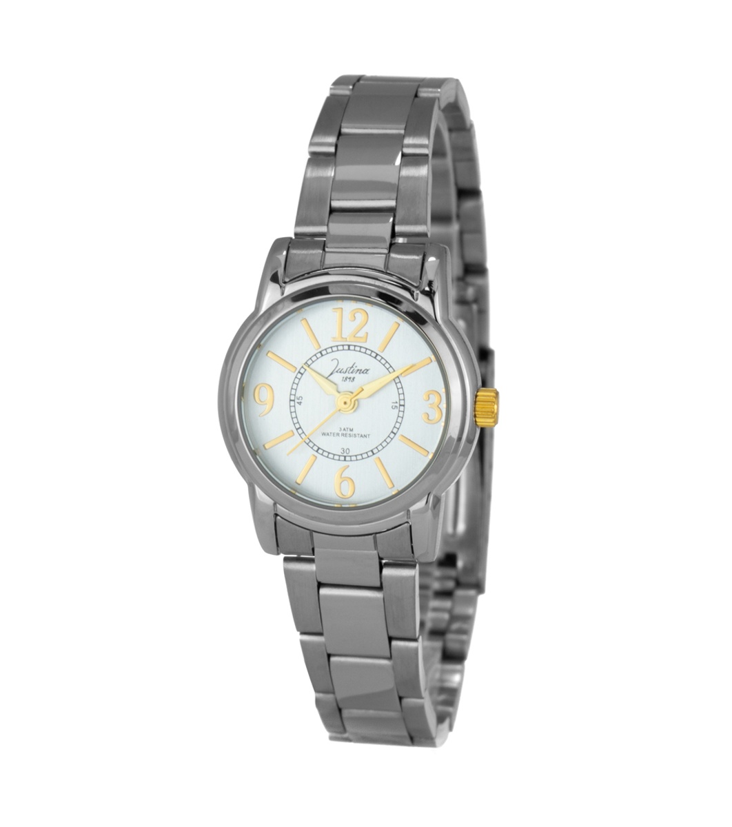 Ceas elegant de damă cu afișaj analogic. Lanț și carcasă cu un design curat. Potrivit pentru utilizare zilnică.