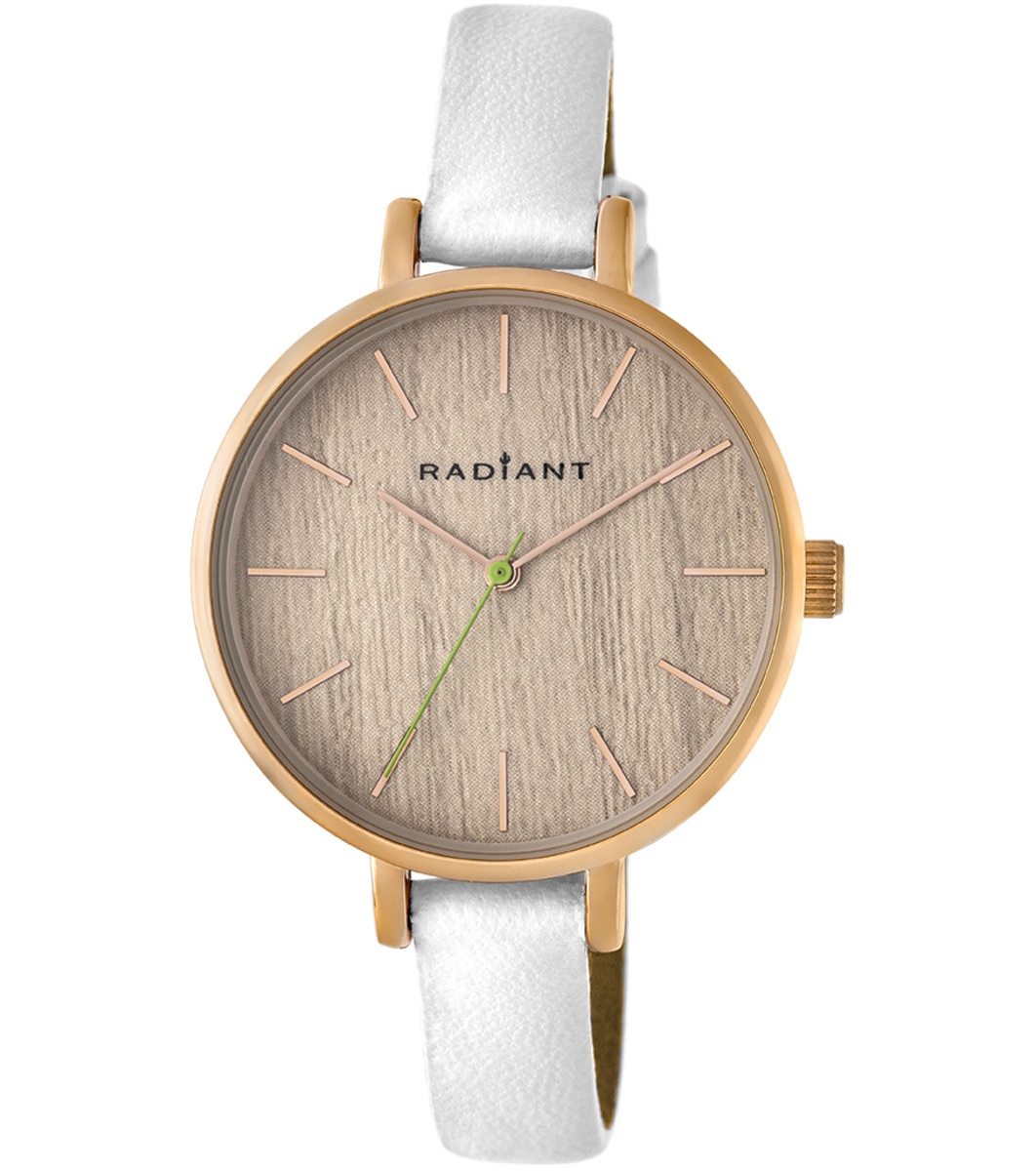 Radiant Ceas de damă cu cuarț auriu cu curea din piele albă