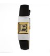 Ceas elegant cu carcasă dreptunghiulară și afișaj analog. Prezintă un design unic al cadranului și o curea elegantă. Potrivit pentru utilizare zilnică.
