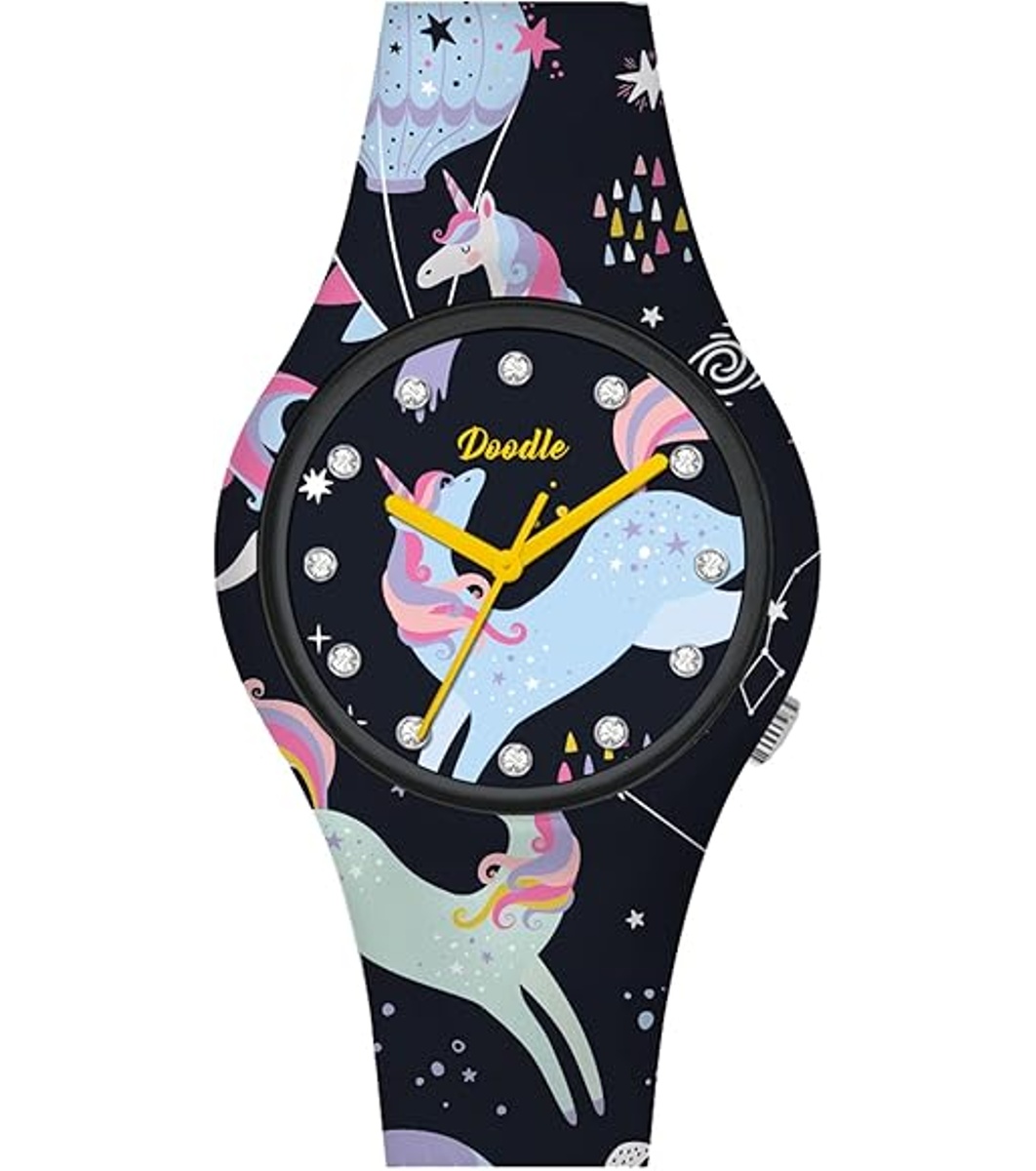Un ceas cu afișaj analogic și un design unic.