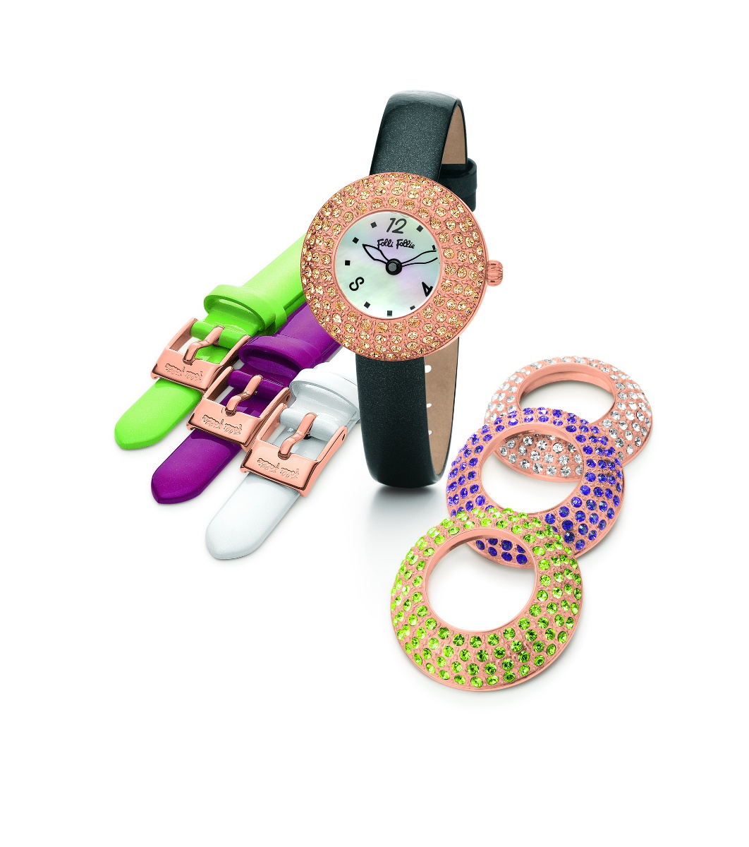 Ceas elegant de damă cu posibilitatea de a schimba curelele și ramele. Disponibil în mai multe culori diferite ale curelelor și ramelor, care pot fi combinate după dorință.