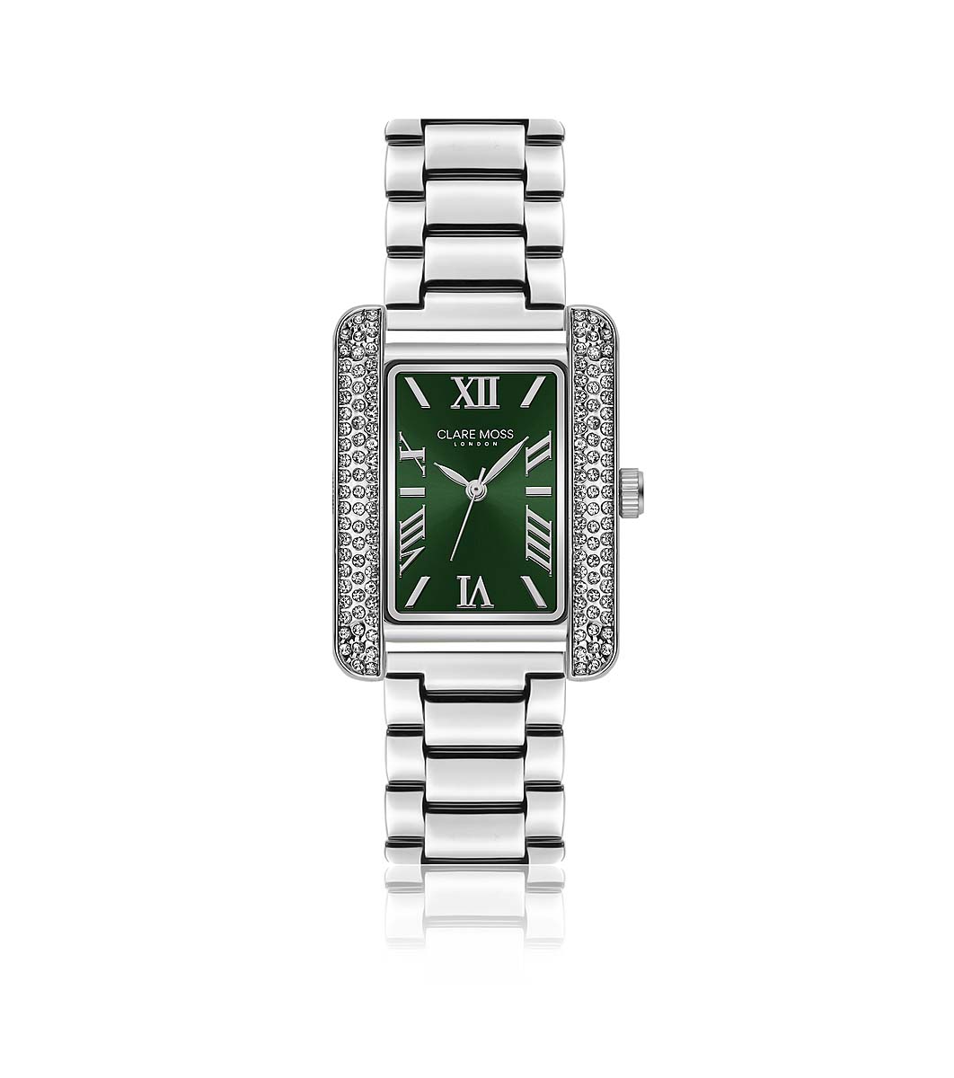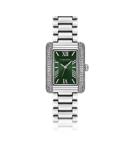 Clare Moss Ceas de damă din argint cu pietricele și cadran verde Wimbledon