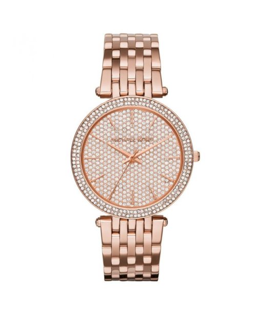 Ceas elegant de damă cu mecanism cu cuarț și afișaj analogic. Prezintă un cadran rotund decorat cu numeroase cristale care adaugă strălucire și stil. Lanțul robust oferă confort și stabilitate la purtare.