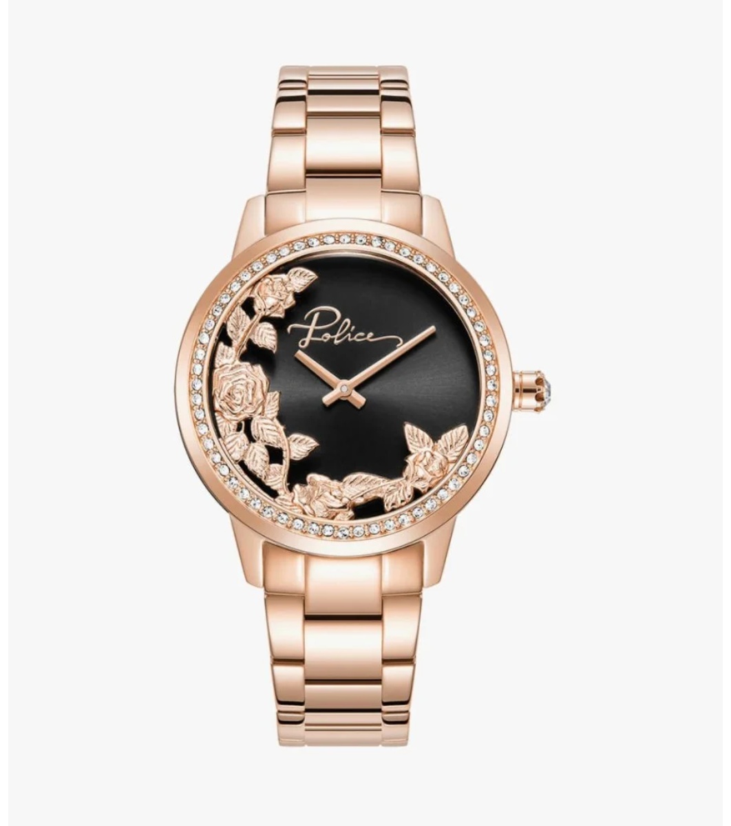 Police Ceas de damă din aur roz cu flori spectaculoase pe cadran