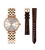 Isabella Ford Ceas de damă din aur roz cu o curea suplimentară din piele maro Cadran analogic cu cristal