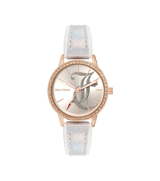 Juicy Couture Ceas de damă din aur roz cu pietre și curea argintie Cadran analogic