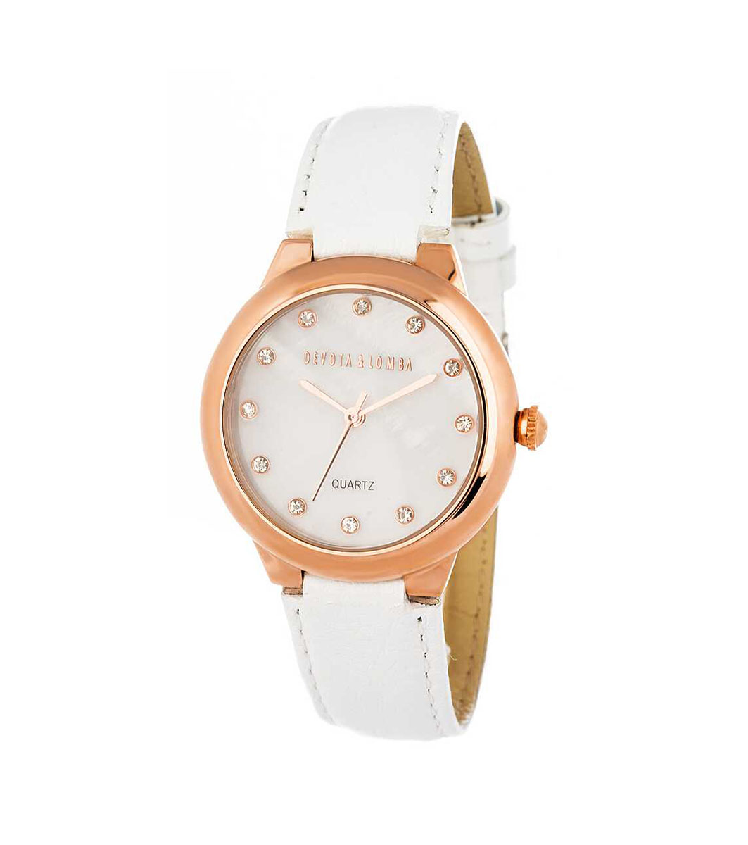 Devota & Lomba Ceas de damă din aur roz și alb Afișaj analog
