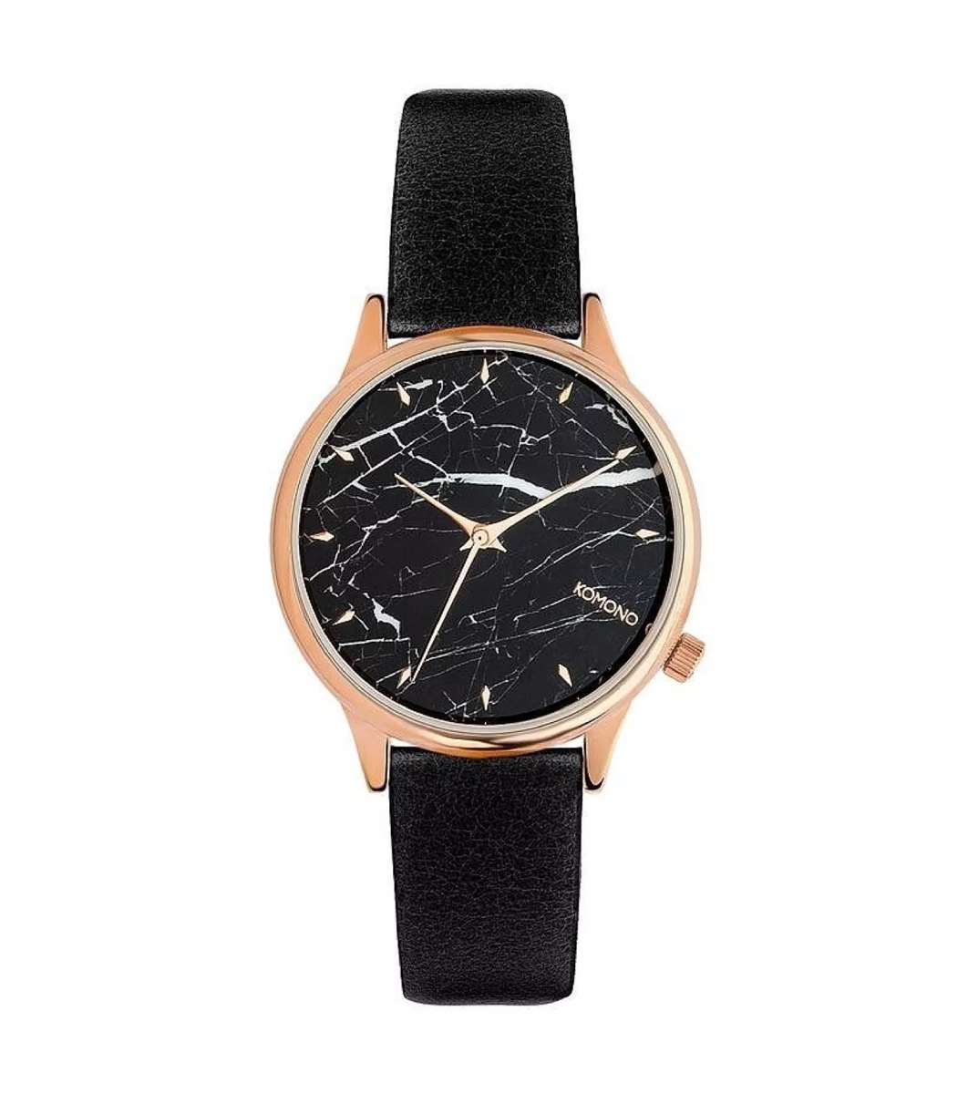 Komono Ceas de damă din aur roz și negru Afișaj analog