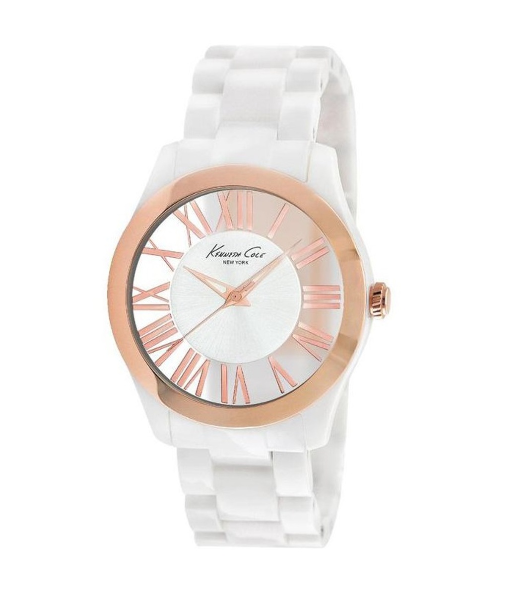 Ceas elegant de damă cu afișaj analog. Se distinge printr-un design curat și cifre romane clasice pe cadran.