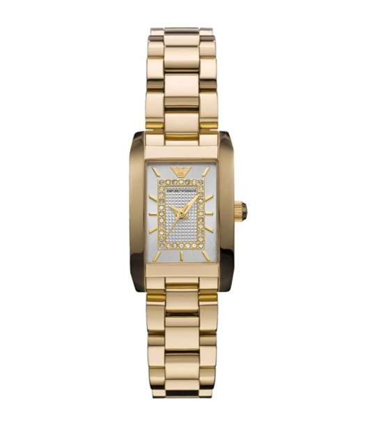 Ceas elegant de damă cu carcasă dreptunghiulară și lanț clasic.