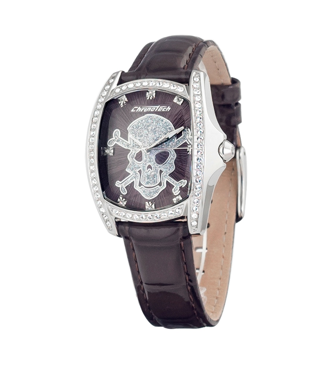 Ceas analogic cu design elegant și elemente decorative. Oferă un aspect unic cu incrustații în jurul afișajului.