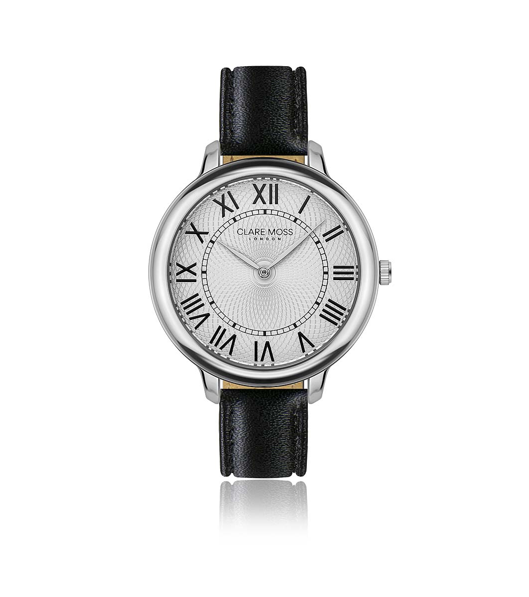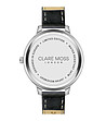 Clare Moss Ceas de dama argintiu cu curea din piele neagra Rose