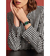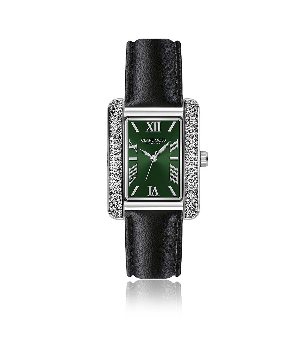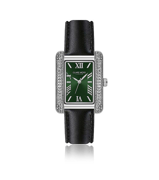 Clare Moss Ceas de dama argintiu cu pietricele si curea neagra imbledon
