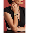 Ceas de dama auriu cu curea din piele neagra Chic