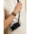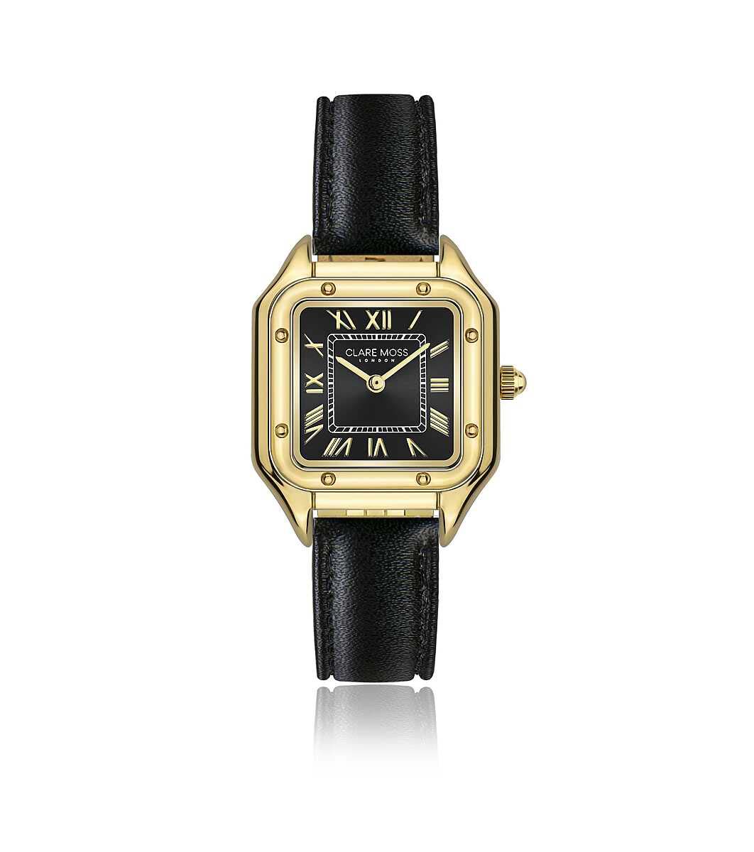 Ceas de dama auriu si negru cu curea din piele Lila