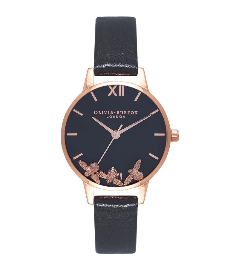 Olivia Burton Ceas de dama din aur negru si roz cu albine Apel analogic