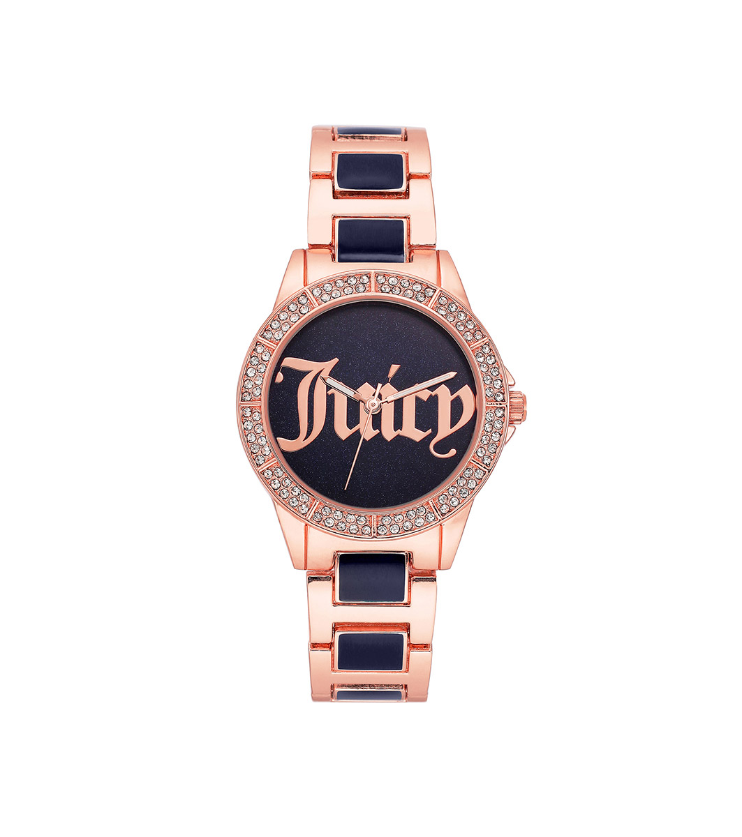Juicy Couture Ceas de dama din aur roz si negru cu pietre Cadran analogic