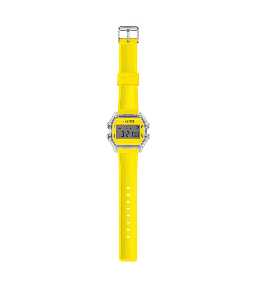 Ceas digital cu afișaj dreptunghiular și curea reglabilă. Potrivit pentru utilizare zilnică și rezistă la o presiune de până la 5 ATM.