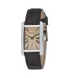 Un ceas cu un design elegant și o carcasă dreptunghiulară.