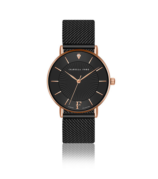 Isabella Ford Ceas negru cu carcasă roz-aurie pentru femei Naomi