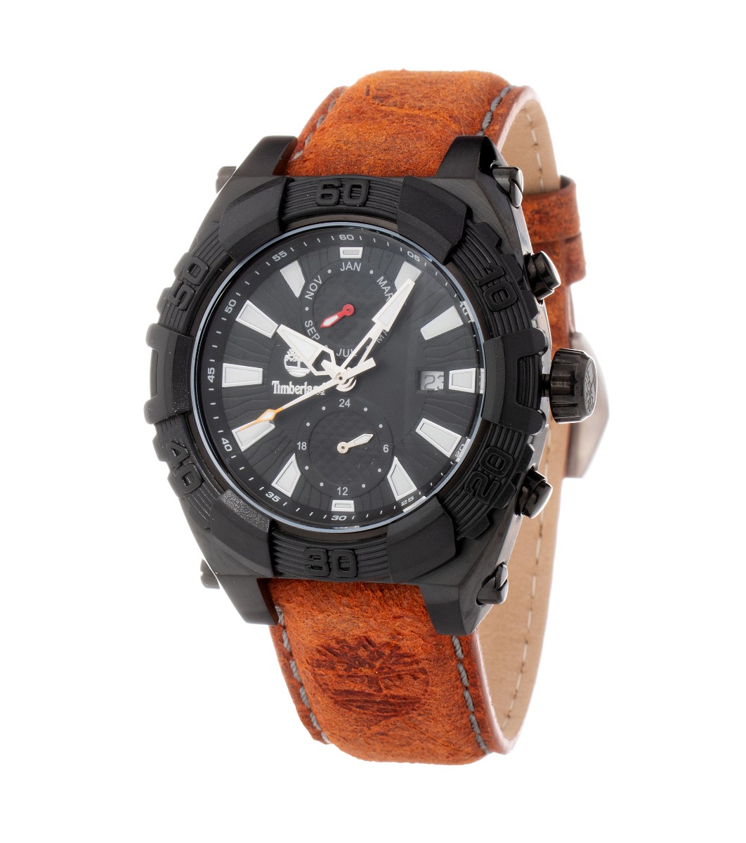 Timberland Ceas negru cu curea din piele maro 10 ATM Ceas bărbătesc cu afișaj analogic și mecanism cu cuarț.