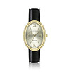 Ceas oval auriu de damă cu curea din piele neagră Créma
