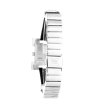 Ceas cu afișaj pătrat și mecanism analogic.