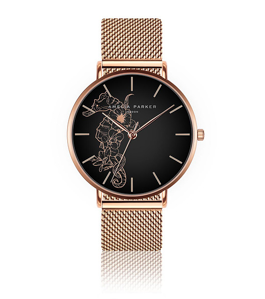 Amelia Parker Ceas roz-auriu cu cadran negru pentru femei Alenia