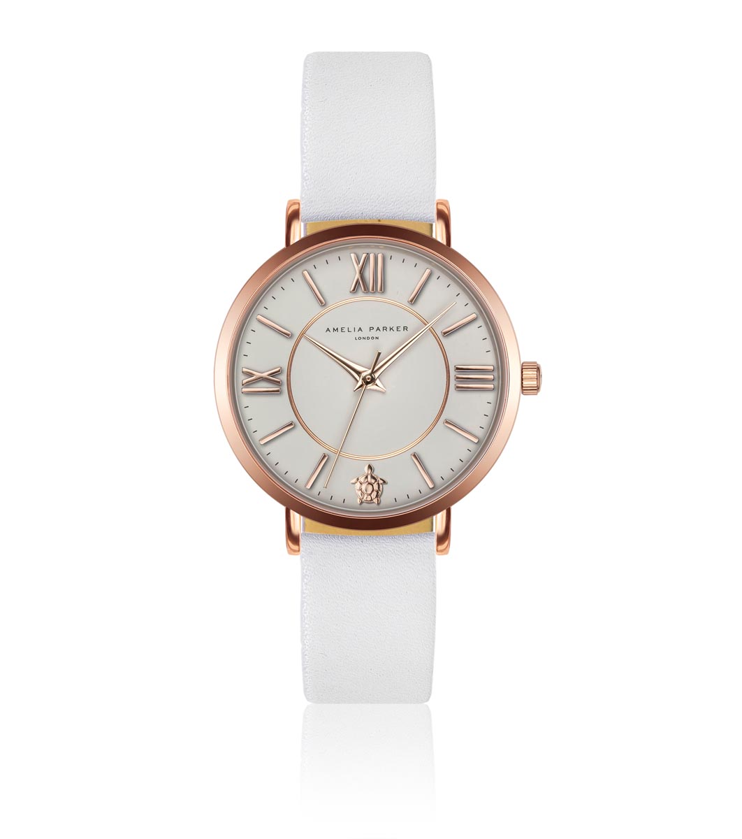 Amelia Parker Ceas roz-auriu cu curea albă din piele Thea