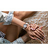 Ceas roz-auriu cu curea albă din piele Thea