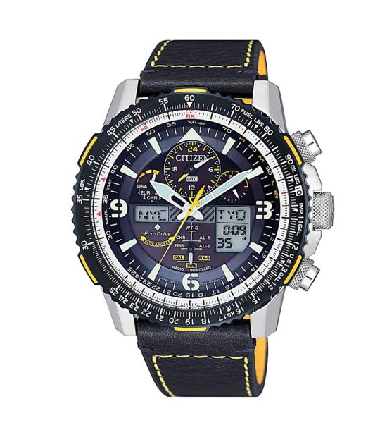 Ceas bărbătesc multifuncțional cu afișaj analogic și diverși indicatori digitali.