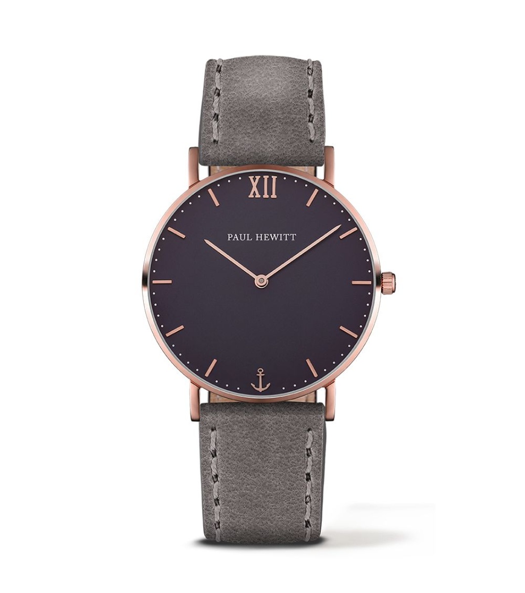 Paul Hewitt Ceas unisex auriu roz cu curea din piele gri