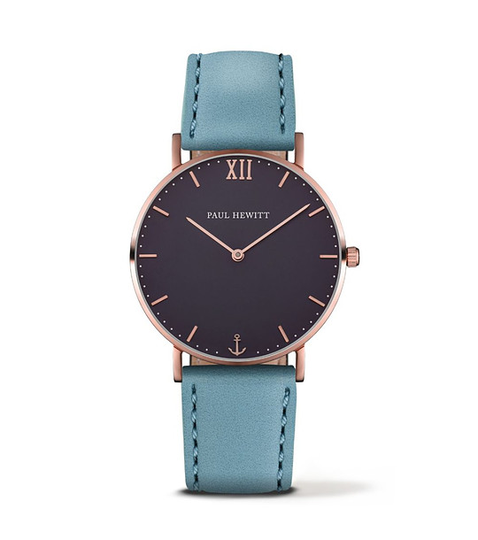Paul Hewitt Ceas unisex auriu-roz cu curea din piele albastră