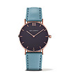 Ceas unisex auriu-roz cu curea din piele albastră