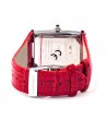 Un ceas modern cu formă dreptunghiulară și afișaj analog. Prezintă cifre mari, ușor de citit și un buton lateral de reglare convenabil. Cureaua este în stil clasic, conferind eleganță aspectului.