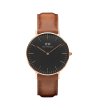 Daniel Wellington Ceas unisex cu curea din piele maro și cadran negru Tip mișcare: cuarț